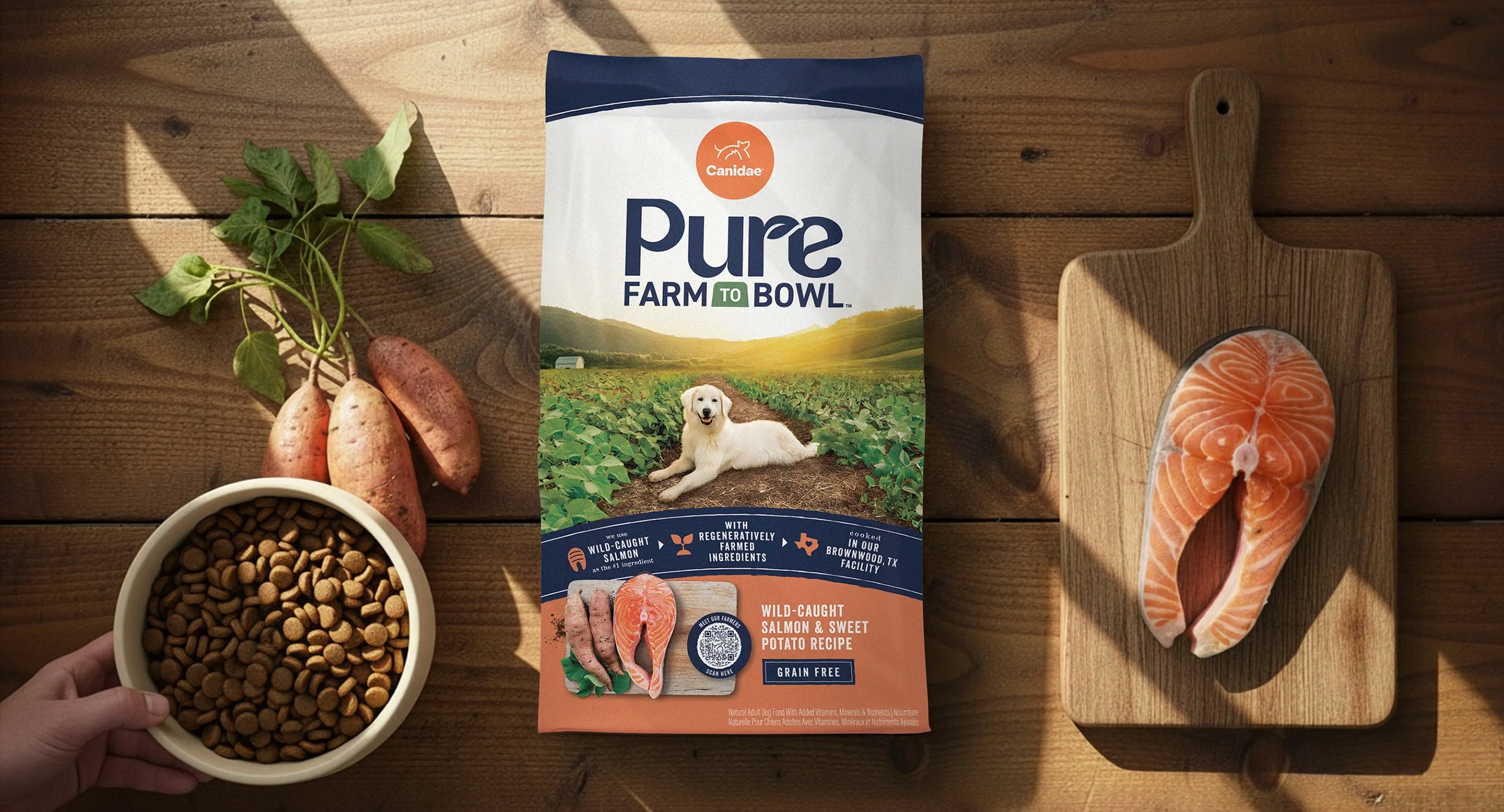 Tasked with reimagining the overall branding and kibble packaging for Canidae Pure, the Enlisted design team focused on the company’s belief that quality pet food starts long before it reaches your dog’s bowl. Inspired by the sustainable practices Canidae follows, it was important that the care that goes into these products was reflected in the overall design. We were eager to make “farm to bowl” not just a phrase, but a visual and emotional cue that conveys transparency and integrity that celebrates the planet-friendly heartbeat of the brand—from regenerative agriculture to responsibly-sourced proteins. Infused with warmth, the packaging highlights the emotion behind growing and feeding quality ingredients.