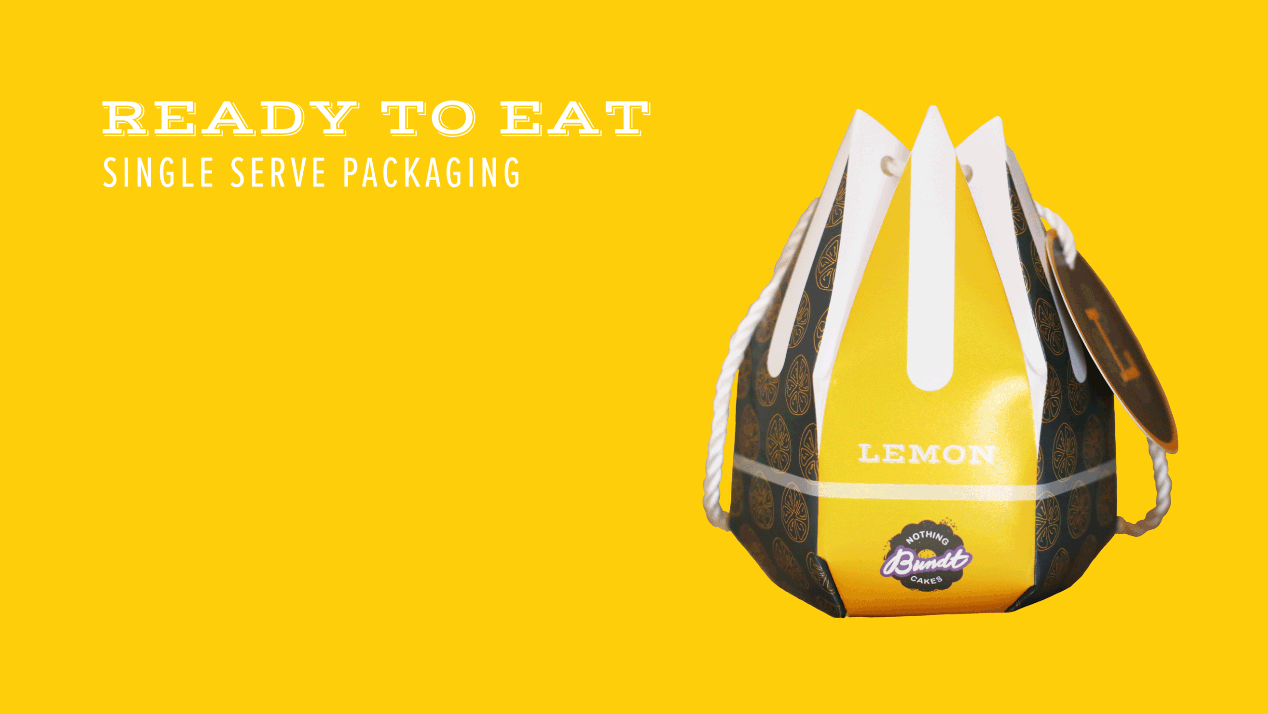 The packaging is a playful, yet elegant design to cater to its core consumer base of young adult families. The packaging has been specifically designed around the bundtlets, which is the individual size bundt cakes. It includes simplistic illustrations, their signature frosting drip as a graphic element, and the packaging easily turns into an individual plate by simply tearing off the middle strip.